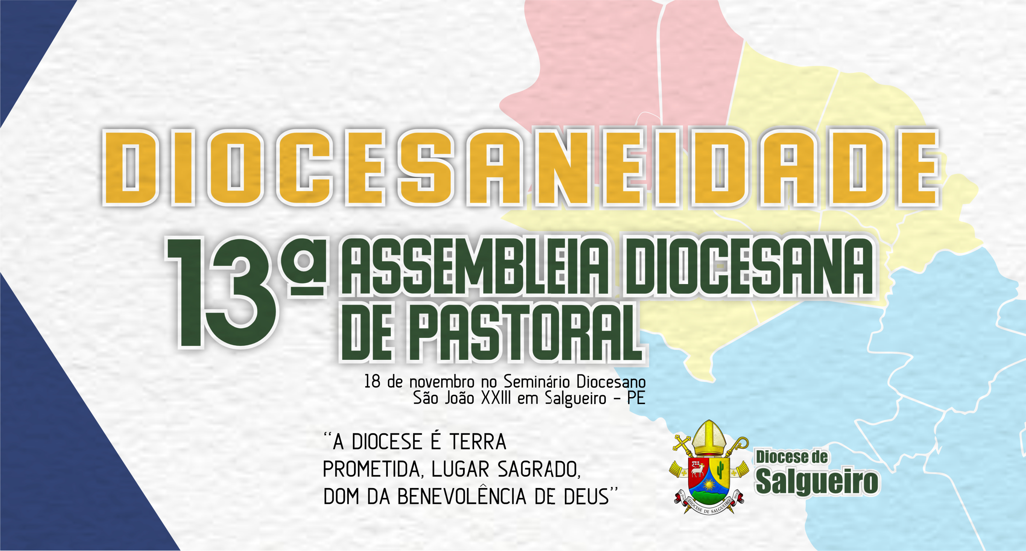 Será realizada aos 18 dias do mês de novembro de 2023, a 13ª Assembleia Diocesana de Pastoral da Diocese de Salgueiro, agora sob o comendo de seu novo bispo Dom José Vicente, no Seminário Diocesano S. João XXIII em Salgueiro. Tendo como inspiração o Sínodo da Sinodalidade convocado pelo Papa Francisco este ano, a diocese assume a proposta de “diocesaneidade” com o tema:“ A diocese é terra prometida, lugar sagrado, dom da benevolência de Deus”. O Pe. Edilson Rodrigues, facilitador do encontro, explica que: